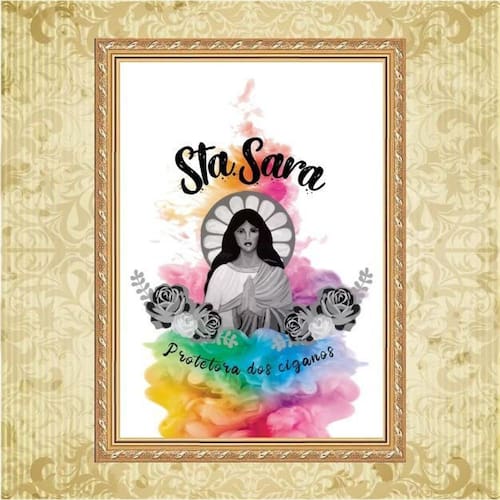 Quadro Moldura Dourada Santa Sara Ciganos 33X24Cm