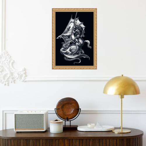 Quadro moldura dourada são jorge fundo preto 24x18cm Acabamento: com vidro Informações do produto tire todas as suas dúvidas no descritivo abaixo: decoração para quarto, sala, cozinha, escritório, área gourmet e muito mais. Chega de paredes vazias medidas - cada peça tem 24x18cm a5 . Material do papel - papel fotográfico brilhante de altíssima resolução acabamento - todos os quadros são acompanhados de vidro ou uma película de acetato para proteção da imagem conforme escolha . - os quadros são embalados de forma segura com plástico bolha com camada dupla de acordo com o tamanho dos quadros. - de 3 meses. Meu quadro chegou. Como posso fixá-lo Você precisa apenas de um martelo e um prego, pois os quadros já vão acompanhados de penduradores. Esta é a forma mais indicada. Caso prefira, você pode utilizar uma fita dupla face neste caso, sugerimos de alta qualidade para evitar que descole e seu quadro caia . Como posso limpar meu quadro A limpeza é feita como um móvel comum da sua casa. Apenas um pano seco ou espanador são suficientes para tal Marca: Não Informado