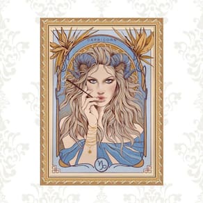Quadro Moldura Dourada Signo Capricórnio 33X24Cm