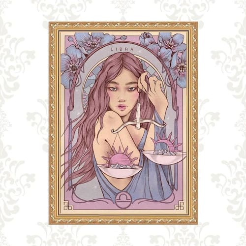 Quadro Moldura Dourada Signo Libra 33X24Cm
