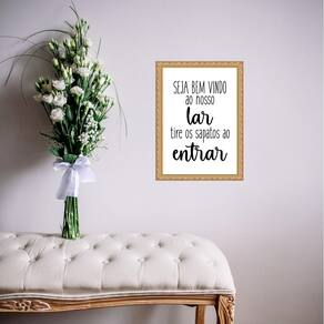 Quadro moldura dourada tire os sapatos 45x34cm Acabamento: com acetato Informações do produto tire todas as suas dúvidas no descritivo abaixo: decoração para quarto, sala, cozinha, escritório, área gourmet e muito mais. Chega de paredes vazias. Medidas - cada peça tem 45x34cm a3 . Material do papel - papel fotográfico brilhante de altíssima resolução acabamento - todos os quadros são acompanhados de vidro ou uma película de acetato para proteção da imagem conforme escolha . - os quadros são embalados de forma segura com plástico bolha com camada dupla de acordo com o tamanho dos quadros. Garantia - garantia de 3 meses. Meu quadro chegou. Como posso fixá-lo Você precisa apenas de um martelo e um prego, pois os quadros já vão acompanhados de penduradores. Esta é a forma mais indicada. Caso prefira, você pode utilizar uma fita dupla face neste caso, sugerimos de alta qualidade para evitar que descole e seu quadro caia . Como posso limpar meu quadro A limpeza é feita como um móvel comum da sua casa. Apenas um pano seco ou espanador são suficientes para tal