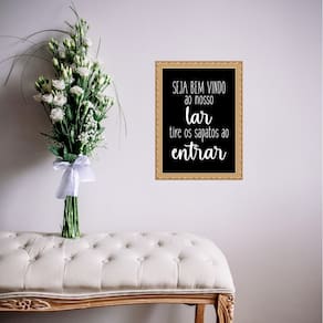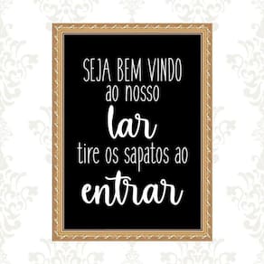 Quadro moldura dourada tire os sapatos ao entrar 45x34cm Acabamento: com vidro Informações do produto tire todas as suas dúvidas no descritivo abaixo: decoração para quarto, sala, cozinha, escritório, área gourmet e muito mais. Chega de paredes vazias. Medidas - cada peça tem 45x34cm a3 . Material do papel - papel fotográfico brilhante de altíssima resolução acabamento - todos os quadros são acompanhados de vidro ou uma película de acetato para proteção da imagem conforme escolha . - os quadros são embalados de forma segura com plástico bolha com camada dupla de acordo com o tamanho dos quadros. Garantia - garantia de 3 meses. Meu quadro chegou. Como posso fixá-lo Você precisa apenas de um martelo e um prego, pois os quadros já vão acompanhados de penduradores. Esta é a forma mais indicada. Caso prefira, você pode utilizar uma fita dupla face neste caso, sugerimos de alta qualidade para evitar que descole e seu quadro caia . Como posso limpar meu quadro A limpeza é feita como um móvel comum da sua casa. Apenas um pano seco ou espanador são suficientes para tal