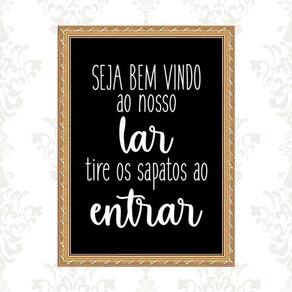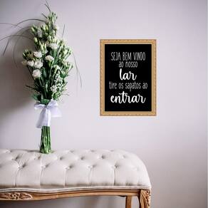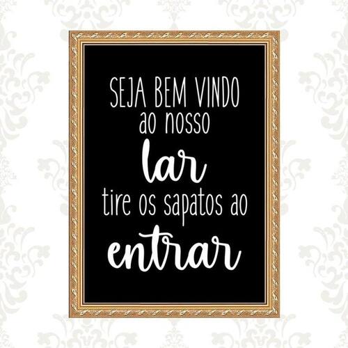 Quadro moldura dourada tire os sapatos ao entrar 45x34cm Acabamento: com vidro Informações do produto tire todas as suas dúvidas no descritivo abaixo: decoração para quarto, sala, cozinha, escritório, área gourmet e muito mais. Chega de paredes vazias. Medidas - cada peça tem 45x34cm a3 . Material do papel - papel fotográfico brilhante de altíssima resolução acabamento - todos os quadros são acompanhados de vidro ou uma película de acetato para proteção da imagem conforme escolha . - os quadros são embalados de forma segura com plástico bolha com camada dupla de acordo com o tamanho dos quadros. - de 3 meses. Meu quadro chegou. Como posso fixá-lo Você precisa apenas de um martelo e um prego, pois os quadros já vão acompanhados de penduradores. Esta é a forma mais indicada. Caso prefira, você pode utilizar uma fita dupla face neste caso, sugerimos de alta qualidade para evitar que descole e seu quadro caia . Como posso limpar meu quadro A limpeza é feita como um móvel comum da sua casa. Apenas um pano seco ou espanador são suficientes para tal Marca: Não Informado