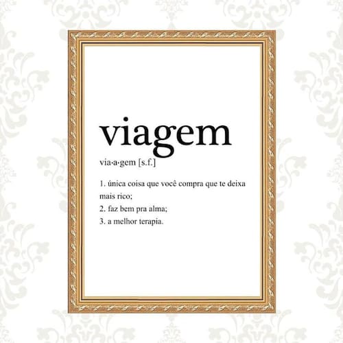 Quadro moldura dourada viagem significado 33x24cm Acabamento: com acetato Informações do produto tire todas as suas dúvidas no descritivo abaixo: decoração para quarto, sala, cozinha, escritório, área gourmet e muito mais. Chega de paredes vazias medidas - cada peça tem 33x24cm a4 . Material do papel - papel fotográfico brilhante de altíssima resolução acabamento - todos os quadros são acompanhados de vidro ou uma película de acetato para proteção da imagem conforme escolha . - os quadros são embalados de forma segura com plástico bolha com camada dupla de acordo com o tamanho dos quadros. - de 3 meses. Meu quadro chegou. Como posso fixá-lo Você precisa apenas de um martelo e um prego, pois os quadros já vão acompanhados de penduradores. Esta é a forma mais indicada. Caso prefira, você pode utilizar uma fita dupla face neste caso, sugerimos de alta qualidade para evitar que descole e seu quadro caia . Como posso limpar meu quadro A limpeza é feita como um móvel comum da sua casa. Apenas um pano seco ou espanador são suficientes para tal