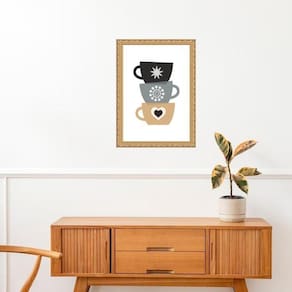 Quadro moldura dourada xícaras de café 33x24cm Acabamento: com acetato Informações do produto tire todas as suas dúvidas no descritivo abaixo: decoração para quarto, sala, cozinha, escritório, área gourmet e muito mais. Chega de paredes vazias medidas - cada peça tem 33x24cm a4 . Material do papel - papel fotográfico brilhante de altíssima resolução acabamento - todos os quadros são acompanhados de vidro ou uma película de acetato para proteção da imagem conforme escolha . - os quadros são embalados de forma segura com plástico bolha com camada dupla de acordo com o tamanho dos quadros. Garantia - garantia de 3 meses. Meu quadro chegou. Como posso fixá-lo Você precisa apenas de um martelo e um prego, pois os quadros já vão acompanhados de penduradores. Esta é a forma mais indicada. Caso prefira, você pode utilizar uma fita dupla face neste caso, sugerimos de alta qualidade para evitar que descole e seu quadro caia . Como posso limpar meu quadro A limpeza é feita como um móvel comum da sua casa. Apenas um pano seco ou espanador são suficientes para tal