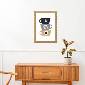 Quadro moldura dourada xícaras de café 45x34cm Acabamento: com vidro Informações do produto tire todas as suas dúvidas no descritivo abaixo: decoração para quarto, sala, cozinha, escritório, área gourmet e muito mais. Chega de paredes vazias. Medidas - cada peça tem 45x34cm a3 . Material do papel - papel fotográfico brilhante de altíssima resolução acabamento - todos os quadros são acompanhados de vidro ou uma película de acetato para proteção da imagem conforme escolha . - os quadros são embalados de forma segura com plástico bolha com camada dupla de acordo com o tamanho dos quadros. Garantia - garantia de 3 meses. Meu quadro chegou. Como posso fixá-lo Você precisa apenas de um martelo e um prego, pois os quadros já vão acompanhados de penduradores. Esta é a forma mais indicada. Caso prefira, você pode utilizar uma fita dupla face neste caso, sugerimos de alta qualidade para evitar que descole e seu quadro caia . Como posso limpar meu quadro A limpeza é feita como um móvel comum da sua casa. Apenas um pano seco ou espanador são suficientes para tal