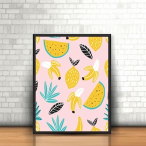 Quadro Moldura Frutas Plantas Banana Melancia Fatias Abacaxi