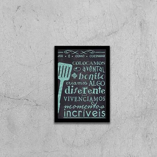 Quadro momentos incríveis na cozinha 24x18cm Moldura: madeira preta Informações do produto tire todas as suas dúvidas no descritivo abaixo: decoração para quarto, sala, cozinha, escritório, área gourmet e muito mais. Chega de paredes vazias medidas - cada peça tem 24x18cm a5 . Material do papel - papel fotográfico brilhante de altíssima resolução acabamento - todos os quadros são acompanhados de uma película de acetato para proteção da imagem. - moldura em madeira maciça na cor branca e pendurador móvel que pode ser retirado facilmente caso deseje fixar com fita dupla face. - os quadros são embalados de forma segura com plástico bolha com camada dupla de acordo com o tamanho dos quadros. - de 3 meses prazo de envio pedimos 24 horas úteis no máximo para enviar seu pedido após o envio, segue os prazos normais dos correios, cerca de 7 exceto para norte e nordeste, que pode ser de até 14 . Em diversas cidades, este prazo normalmente é reduzido, mas depende do prazo dos correios. Meu quadro chegou. Como posso fixá-lo Você precisa apenas de um martelo e um prego, pois os quadros já vão acompanhados de penduradores. Esta é a forma mais indicada. Caso prefira, você pode utilizar uma fita dupla face neste caso, sugerimos de alta qualidade para evitar que descole e seu quadro caia . Como posso limpar meu quadro A limpeza é feita como um móvel comum da sua casa. Apenas um pano seco ou espanador são suficientes para tal Marca: Não Informado Ean: 7892091054764