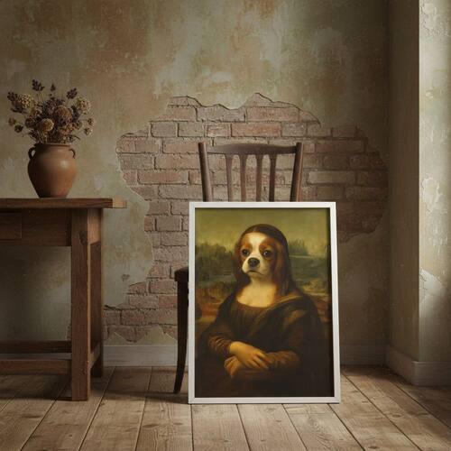 Quadro Mona Lisa King Charles spaniel 24x18cm Mold Preta