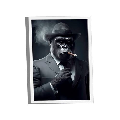Quadro Monkey Gangstar -- BR ARTES Moldura Branca - Médio 84x54 -