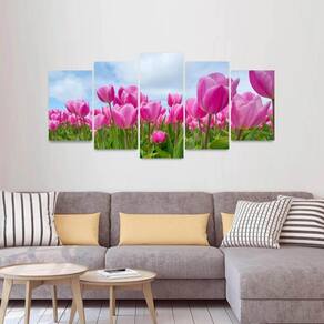 Especificações: Quadro decorativo Mosaico de 5 Peças: Tamanho total de 125x60 cm Comprimento x Altura 02 Peças menores de 25x40 cm cada 02 Peças Médias de 25x50 cm cada 01 Peça Central de 25x60 cm Espaçamento sugerido entre as peças - 1 á 2 cm Espessura do produto - 9 mm