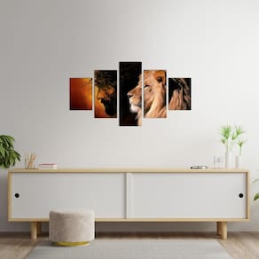 Quadro Mosaico 5 Peças Horizontal Mdf Fita Dupla Face Leão