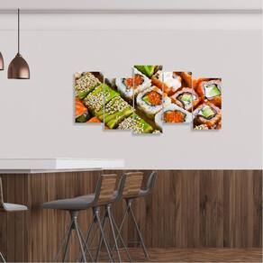 Dimensões do Produto: Tamanho total do produto: 125x60 cm Comprimento x Altura 01 Peça Central: 25x60 cm. 04 Peças Laterais: 25x45 cm Espaçamento entre as peças de 1 cm - Tamanho total com espaçamentos 129x60 cm. Espessura do produto - 9 mm