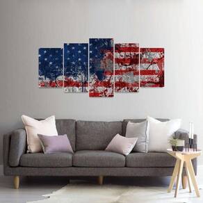 Quadro Mosaico Arte Bandeira Estados Unidos 5 Peças
