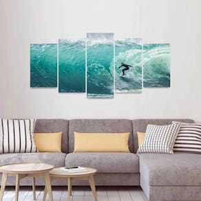 Especificações: Quadro decorativo Mosaico de 5 Peças: Tamanho total de 125x60 cm Comprimento x Altura 02 Peças menores de 25x40 cm cada 02 Peças Médias de 25x50 cm cada 01 Peça Central de 25x60 cm Espaçamento sugerido entre as peças - 1 á 2 cm Espessura do produto - 9 mm
