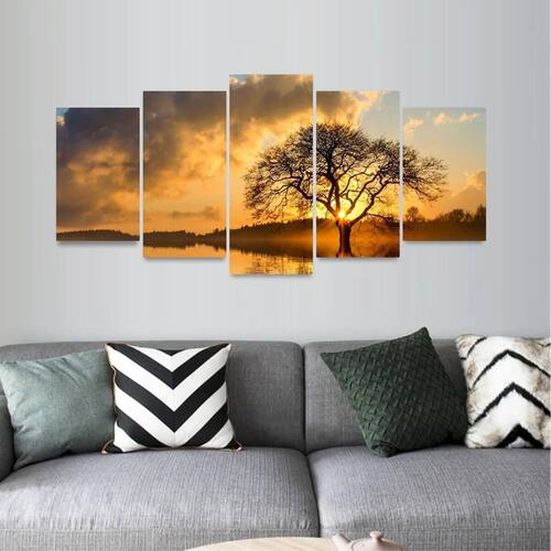 Especificações: Quadro decorativo Mosaico de 5 Peças: Tamanho total de 125x60 cm Comprimento x Altura 02 Peças menores de 25x40 cm cada 02 Peças Médias de 25x50 cm cada 01 Peça Central de 25x60 cm Espaçamento sugerido entre as peças - 1 á 2 cm Espessura do produto - 9 mm