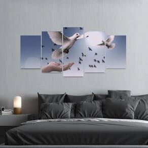 Especificações: Quadro decorativo Mosaico de 5 Peças: Tamanho total de 125x60 cm Comprimento x Altura 02 Peças menores de 25x40 cm cada 02 Peças Médias de 25x50 cm cada 01 Peça Central de 25x60 cm Espaçamento sugerido entre as peças - 1 á 2 cm Espessura do produto - 9 mm