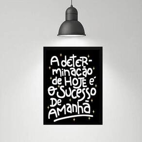 Quadro motivacional determinação sucesso 45x34cm - com vidro Moldura: madeira branca Informações do produto tire todas as suas dúvidas no descritivo abaixo: decoração para quarto, sala, cozinha, escritório, área gourmet e muito mais. Chega de paredes vazias medidas - cada peça tem 45x34cm a3 . Material do papel - papel fotográfico brilhante de altíssima resolução acabamento - todos os quadros são acompanhados de vidro para proteção da imagem. - moldura em madeira maciça na cor preta ou branca conforme produto escolhido e pendurador . - os quadros são embalados de forma segura com plástico bolha com camada dupla de acordo com o tamanho dos quadros. Garantia - garantia de 3 meses. Meu quadro chegou. Como posso fixá-lo Você precisa apenas de um martelo e um prego, pois os quadros já vão acompanhados de penduradores. Esta é a forma mais indicada. Como posso limpar meu quadro A limpeza é feita como um móvel comum da sua casa. Apenas um pano seco ou espanador são suficientes para tal