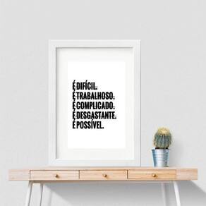 Quadro motivacional é possível - 60x48cm Moldura: madeira branca Informações do produto tire todas as suas dúvidas no descritivo abaixo: decoração para quarto, sala, cozinha, escritório, área gourmet e muito mais. Chega de paredes vazias medidas - kit composto por 6 quadros, sendo 2 quadros com medida 18x24cm, 3 quadros com 24x33cm e 1 quadro com medida 33x45cm. Material do papel - papel fotográfico brilhante de altíssima resolução acabamento - todos os quadros são acompanhados de uma película de acetato para proteção da imagem. - os quadros são embalados de forma segura com plástico bolha com camada dupla de acordo com o tamanho dos quadros. Garantia - garantia de 3 meses. Meu quadro chegou. Como posso fixá-lo Você precisa apenas de um martelo e um prego, pois os quadros já vão acompanhados de penduradores. Esta é a forma mais indicada. Caso prefira, você pode utilizar uma fita dupla face neste caso, sugerimos de alta qualidade para evitar que descole e seu quadro caia . Como posso limpar meu quadro A limpeza é feita como um móvel comum da sua casa. Apenas um pano seco ou espanador são suficientes para tal