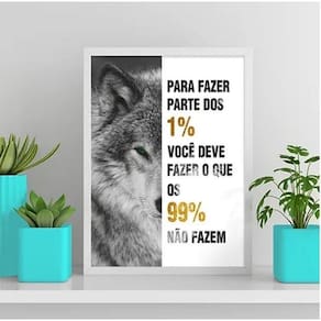 Quadro motivacional lobo 24x18cm - com vidro Moldura: madeira preta Informações do produto tire todas as suas dúvidas no descritivo abaixo: decoração para quarto, sala, cozinha, escritório, área gourmet e muito mais. Chega de paredes vazias medidas - cada peça tem 24x18cm a5 . Material do papel - papel fotográfico brilhante de altíssima resolução acabamento - todos os quadros são acompanhados de vidro para proteção da imagem. - moldura em madeira maciça na cor preta e pendurador . - os quadros são embalados de forma segura com plástico bolha com camada dupla de acordo com o tamanho dos quadros. Garantia - garantia de 3 meses. Meu quadro chegou. Como posso fixá-lo Você precisa apenas de um martelo e um prego, pois os quadros já vão acompanhados de penduradores. Esta é a forma mais indicada. Como posso limpar meu quadro A limpeza é feita como um móvel comum da sua casa. Apenas um pano seco ou espanador são suficientes para tal