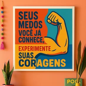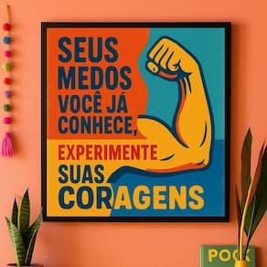 Quadro Motivacional - Medo e Coragem - 33x33cm - com vidro - Cor: Moldura Preta
