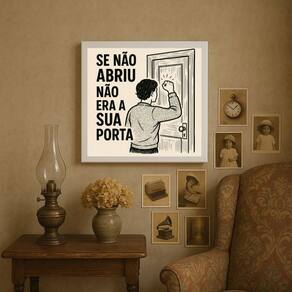 Quadro Motivacional Se Não Abriu Não Era a Sua Porta - 33x33cm - com vidro - Cor: Moldura Preta