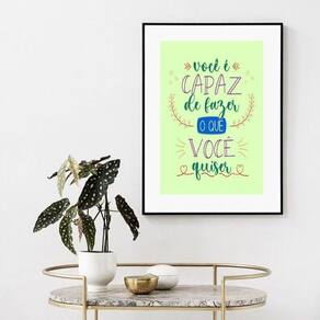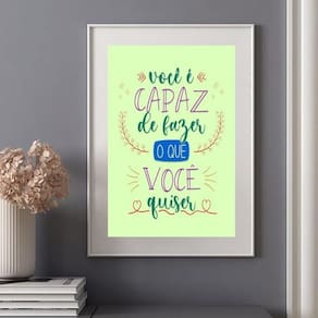 Quadro motivacional você é capaz - 60x48cm Cor: moldura preta Informações do produto tire todas as suas dúvidas no descritivo abaixo: decoração para quarto, sala, cozinha, escritório, área gourmet e muito mais. Chega de paredes vazias medidas - cada peça tem 60x48cm . Material do papel - papel fotográfico brilhante de altíssima resolução acabamento - todos os quadros são acompanhados de vidro para proteção da imagem. - moldura em madeira maciça na cor preta ou branca conforme produto escolhido e pendurador. - paspatur branco com 7cm de largura - os quadros são embalados de forma segura com plástico bolha com camada dupla de acordo com o tamanho dos quadros. Garantia - garantia de 3 meses. Meu quadro chegou. Como posso fixá-lo Você precisa apenas de um martelo e um prego, pois os quadros já vão acompanhados de penduradores. Esta é a forma mais indicada. Como posso limpar meu quadro A limpeza é feita como um móvel comum da sua casa. Apenas um pano seco ou espanador são suficientes para tal