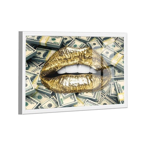 Quadro Mouth Dollars -- BR ARTES Moldura Branca e Vidro - Médio 84x54 -