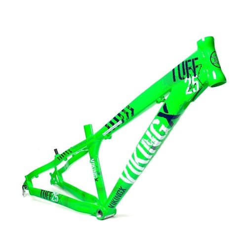 O Quadro MTB VikingX Dirt Jump Tuff X-25 Aro 26 é muito leve e possui um design inclinado, o que ajuda que os ciclistas mais ousados façam suas manobras radicais e até pequenos saltos. Possui reforço nas zonas de maior stress com tubos mais grossos, evitando acidentes e garantindo a segurança de quem está pilotando.
