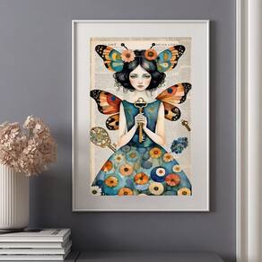 Quadro Mulher Borboleta - 60x48cm - Cor: Moldura Branca