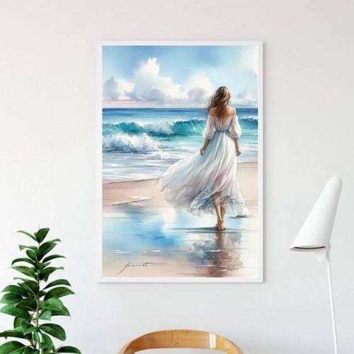 Quadro mulher caminhando praia aquarela 45x34cm - com vidro Moldura: madeira preta Informações do produto tire todas as suas dúvidas no descritivo abaixo: decoração para quarto, sala, cozinha, escritório, área gourmet e muito mais. Chega de paredes vazias medidas - cada peça tem 45x34cm a3 . Material do papel - papel fotográfico brilhante de altíssima resolução acabamento - todos os quadros são acompanhados de vidro para proteção da imagem. - moldura em madeira maciça na cor preta ou branca conforme produto escolhido e pendurador . - os quadros são embalados de forma segura com plástico bolha com camada dupla de acordo com o tamanho dos quadros. Garantia - garantia de 3 meses. Meu quadro chegou. Como posso fixá-lo Você precisa apenas de um martelo e um prego, pois os quadros já vão acompanhados de penduradores. Esta é a forma mais indicada. Como posso limpar meu quadro A limpeza é feita como um móvel comum da sua casa. Apenas um pano seco ou espanador são suficientes para tal