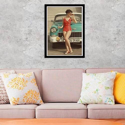 Quadro mulher com carro dos anos 50 24x18cm - com vidro Moldura: madeira preta Informações do produto Decoração para quarto, sala, cozinha, escritório, área gourmet e muito mais. Chega de paredes vazias medidas - cada peça tem 24x18cm a5 . Material do papel - papel fotográfico brilhante de altíssima resolução Acabamento - todos os quadros são acompanhados de vidro para proteção da imagem. - Moldura em madeira maciça na cor preta e pendurador . - Os quadros são embalados de forma segura com plástico bolha com camada dupla de acordo com o tamanho dos quadros. - de 3 meses. Meu quadro chegou. Como posso fixá-lo Você precisa apenas de um martelo e um prego, pois os quadros já vão acompanhados de penduradores. Esta é a forma mais indicada. Como posso limpar meu quadro A limpeza é feita como um móvel comum da sua casa. Apenas um pano seco ou espanador são suficientes para tal Marca: Não Informado Ean: 7892090587645