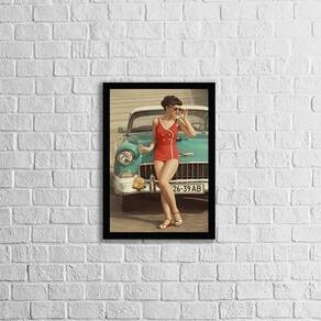 Quadro mulher com carro dos anos 50 45x34cm - com vidro Moldura: madeira preta Informações do produto tire todas as suas dúvidas no descritivo abaixo: decoração para quarto, sala, cozinha, escritório, área gourmet e muito mais. Chega de paredes vazias medidas - cada peça tem 45x34cm a3 . Material do papel - papel fotográfico brilhante de altíssima resolução acabamento - todos os quadros são acompanhados de vidro para proteção da imagem. - moldura em madeira maciça na cor preta e pendurador . - os quadros são embalados de forma segura com plástico bolha com camada dupla de acordo com o tamanho dos quadros. - de 3 meses. Meu quadro chegou. Como posso fixá-lo Você precisa apenas de um martelo e um prego, pois os quadros já vão acompanhados de penduradores. Esta é a forma mais indicada. Como posso limpar meu quadro A limpeza é feita como um móvel comum da sua casa. Apenas um pano seco ou espanador são suficientes para tal Marca: Não Informado
