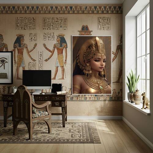 Quadro Mulher da Alta Sociedade do Antigo Egito- 70x50cm - Cor: Moldura Preta