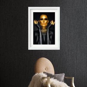 Quadro mulher dourada com preto - 60x48cm Moldura: madeira preta Informações do produto tire todas as suas dúvidas no descritivo abaixo: decoração para quarto, sala, cozinha, escritório, área gourmet e muito mais. Chega de paredes vazias medidas - cada peça tem 60x48cm . Material do papel - papel fotográfico brilhante de altíssima resolução acabamento - todos os quadros são acompanhados de vidro para proteção da imagem. - moldura em madeira maciça na cor preta ou branca conforme produto escolhido e pendurador. - paspatur branco com 7cm de largura - os quadros são embalados de forma segura com plástico bolha com camada dupla de acordo com o tamanho dos quadros. - de 3 meses. Meu quadro chegou. Como posso fixá-lo Você precisa apenas de um martelo e um prego, pois os quadros já vão acompanhados de penduradores. Esta é a forma mais indicada. Como posso limpar meu quadro A limpeza é feita como um móvel comum da sua casa. Apenas um pano seco ou espanador são suficientes para tal Marca: Não Informado