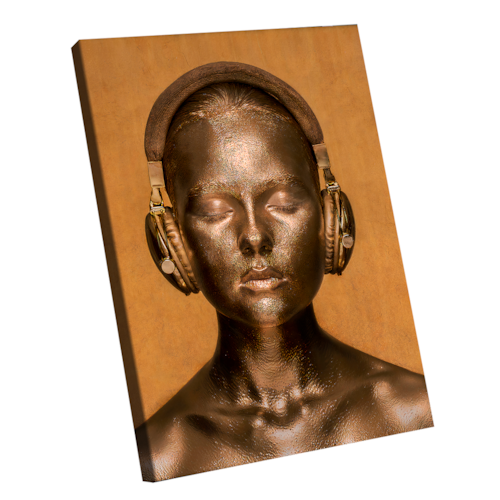 Quadro Mulher Dourada de Fone -- BR ARTES Borda Infinita - Grande 118x78 -