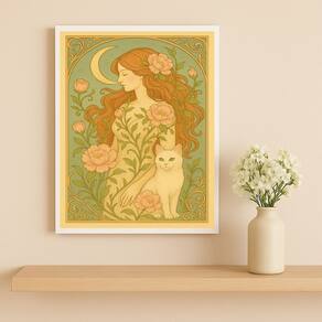Quadro Mulher e Gato Art Nouveau 45x34cm Mold Preta