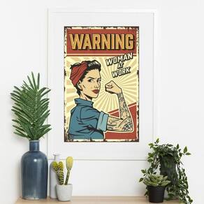 Quadro mulher trabalhando - 60x48cm Cor: moldura preta Informações do produto tire todas as suas dúvidas no descritivo abaixo: decoração para quarto, sala, cozinha, escritório, área gourmet e muito mais. Chega de paredes vazias medidas - cada peça tem 60x48cm . Material do papel - papel fotográfico brilhante de altíssima resolução acabamento - todos os quadros são acompanhados de vidro para proteção da imagem. - moldura em madeira maciça na cor preta ou branca conforme produto escolhido e pendurador. - paspatur branco com 7cm de largura - os quadros são embalados de forma segura com plástico bolha com camada dupla de acordo com o tamanho dos quadros. Garantia - garantia de 3 meses. Meu quadro chegou. Como posso fixá-lo Você precisa apenas de um martelo e um prego, pois os quadros já vão acompanhados de penduradores. Esta é a forma mais indicada. Como posso limpar meu quadro A limpeza é feita como um móvel comum da sua casa. Apenas um pano seco ou espanador são suficientes para tal
