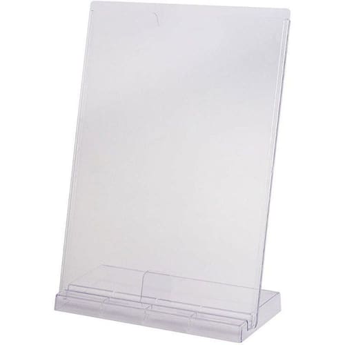 O display office a4 com suporte e excelente para expor informacoes de forma facil e visualmente agradavel. O display tem cantos arredondados e uma abertura superior tipo meia lua para facilitar o manuseio dos papeis. Ele pode ser Utilizado tanto na vertical quanto na horizontal e e produzido em poliestireno, um material que propicia alta visibilidade e otima resistencia. O display office a4 e ideal para expor informativos, cardapios, fotos, comandas e impressos em geral. Embalagem: unidade. Referência: 10090024