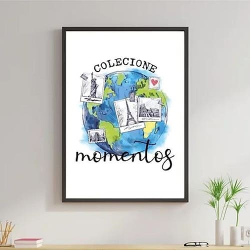 Quadro mundo aquarela colecione momentos 33x24cm - com vidro Moldura: madeira preta