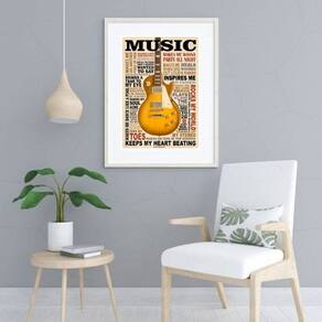Quadro Music Guitar - 60x48cm - Moldura: Madeira branca