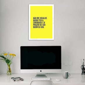 Quadro não me idealize 45x34cm Cor: moldura preta Informações do produto tire todas as suas dúvidas no descritivo abaixo: decoração para quarto, sala, cozinha, escritório, área gourmet e muito mais. Chega de paredes vazias. Medidas - cada peça tem 45x34cm a3 . Material do papel - papel fotográfico brilhante de altíssima resolução acabamento - todos os quadros são acompanhados de uma película de acetato para proteção da imagem. - os quadros são embalados de forma segura com plástico bolha com camada dupla de acordo com o tamanho dos quadros. Garantia - garantia de 3 meses. Meu quadro chegou. Como posso fixá-lo Você precisa apenas de um martelo e um prego, pois os quadros já vão acompanhados de penduradores. Esta é a forma mais indicada. Caso prefira, você pode utilizar uma fita dupla face neste caso, sugerimos de alta qualidade para evitar que descole e seu quadro caia . Como posso limpar meu quadro A limpeza é feita como um móvel comum da sua casa. Apenas um pano seco ou espanador são suficientes para tal