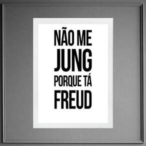 Quadro não me jung porque tá freud 45x34cm - com vidro Moldura: madeira branca Informações do produto tire todas as suas dúvidas no descritivo abaixo: decoração para quarto, sala, cozinha, escritório, área gourmet e muito mais. Chega de paredes vazias medidas - cada peça tem 45x34cm a3 . Material do papel - papel fotográfico brilhante de altíssima resolução acabamento - todos os quadros são acompanhados de vidro para proteção da imagem. - moldura em madeira maciça na cor preta ou branca conforme produto escolhido e pendurador . - os quadros são embalados de forma segura com plástico bolha com camada dupla de acordo com o tamanho dos quadros. Garantia - garantia de 3 meses. Meu quadro chegou. Como posso fixá-lo Você precisa apenas de um martelo e um prego, pois os quadros já vão acompanhados de penduradores. Esta é a forma mais indicada. Como posso limpar meu quadro A limpeza é feita como um móvel comum da sua casa. Apenas um pano seco ou espanador são suficientes para tal