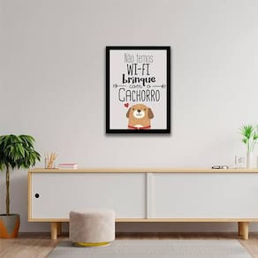 Quadro não temos wi-fi. Brinque com o cachorro 24x18cm Moldura: madeira preta Informações do produto tire todas as suas dúvidas no descritivo abaixo: decoração para quarto, sala, cozinha, escritório, área gourmet e muito mais. Chega de paredes vazias medidas - cada peça tem 24x18cm a5 . Material do papel - papel fotográfico brilhante de altíssima resolução acabamento - todos os quadros são acompanhados de uma película de acetato para proteção da imagem. - moldura em madeira maciça na cor branca e pendurador móvel que pode ser retirado facilmente caso deseje fixar com fita dupla face. - os quadros são embalados de forma segura com plástico bolha com camada dupla de acordo com o tamanho dos quadros. - de 3 meses prazo de envio pedimos 24 horas úteis no máximo para enviar seu pedido após o envio, segue os prazos normais dos correios, cerca de 7 exceto para norte e nordeste, que pode ser de até 14 . Em diversas cidades, este prazo normalmente é reduzido, mas depende do prazo dos correios. Meu quadro chegou. Como posso fixá-lo Você precisa apenas de um martelo e um prego, pois os quadros já vão acompanhados de penduradores. Esta é a forma mais indicada. Caso prefira, você pode utilizar uma fita dupla face neste caso, sugerimos de alta qualidade para evitar que descole e seu quadro caia . Como posso limpar meu quadro A limpeza é feita como um móvel comum da sua casa. Apenas um pano seco ou espanador são suficientes para tal Marca: Não Informado