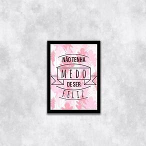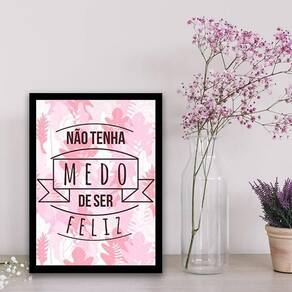 Quadro não tenha medo de ser feliz 33x24cm - com vidro Moldura: madeira preta Informações do produto tire todas as suas dúvidas no descritivo abaixo: decoração para quarto, sala, cozinha, escritório, área gourmet e muito mais. Chega de paredes vazias medidas - cada peça tem 33x24cm a4 . Material do papel - papel fotográfico brilhante de altíssima resolução acabamento - todos os quadros são acompanhados de vidro para proteção da imagem. - moldura em madeira maciça na cor preta e pendurador . - os quadros são embalados de forma segura com plástico bolha com camada dupla de acordo com o tamanho dos quadros. Garantia - garantia de 3 meses. Meu quadro chegou. Como posso fixá-lo Você precisa apenas de um martelo e um prego, pois os quadros já vão acompanhados de penduradores. Esta é a forma mais indicada. Como posso limpar meu quadro A limpeza é feita como um móvel comum da sua casa. Apenas um pano seco ou espanador são suficientes para tal Ean: 7895142227407