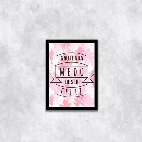 Quadro não tenha medo de ser feliz 33x24cm - com vidro Moldura: madeira preta Informações do produto tire todas as suas dúvidas no descritivo abaixo: decoração para quarto, sala, cozinha, escritório, área gourmet e muito mais. Chega de paredes vazias medidas - cada peça tem 33x24cm a4 . Material do papel - papel fotográfico brilhante de altíssima resolução acabamento - todos os quadros são acompanhados de vidro para proteção da imagem. - moldura em madeira maciça na cor preta e pendurador . - os quadros são embalados de forma segura com plástico bolha com camada dupla de acordo com o tamanho dos quadros. Garantia - garantia de 3 meses. Meu quadro chegou. Como posso fixá-lo Você precisa apenas de um martelo e um prego, pois os quadros já vão acompanhados de penduradores. Esta é a forma mais indicada. Como posso limpar meu quadro A limpeza é feita como um móvel comum da sua casa. Apenas um pano seco ou espanador são suficientes para tal Ean: 7895142227407