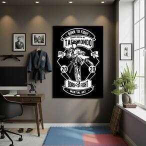 Quadro Nasci Lutar Taekwondo 70x50cm Mold Branca