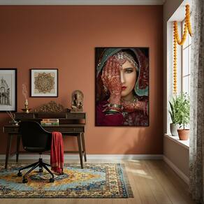 Quadro Noiva Indiana com Tatuagens de Henna - 70x50cm - Cor: Moldura Preta
