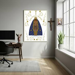 Quadro Nossa Senhora Aparecida - 70x50cm - Cor: Moldura Branca