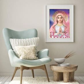 Quadro nossa senhora da rosa mística - 60x48cm Moldura: madeira preta Informações do produto tire todas as suas dúvidas no descritivo abaixo: decoração para quarto, sala, cozinha, escritório, área gourmet e muito mais. Chega de paredes vazias medidas - cada peça tem 60x48cm . Material do papel - papel fotográfico brilhante de altíssima resolução acabamento - todos os quadros são acompanhados de vidro para proteção da imagem. - moldura em madeira maciça na cor preta ou branca conforme produto escolhido e pendurador. - paspatur branco com 7cm de largura - os quadros são embalados de forma segura com plástico bolha com camada dupla de acordo com o tamanho dos quadros. - de 3 meses. Meu quadro chegou. Como posso fixá-lo Você precisa apenas de um martelo e um prego, pois os quadros já vão acompanhados de penduradores. Esta é a forma mais indicada. Como posso limpar meu quadro A limpeza é feita como um móvel comum da sua casa. Apenas um pano seco ou espanador são suficientes para tal
